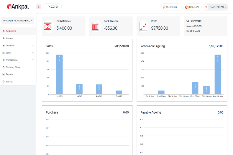 ANKPAL is Cloud based Accounting Platform ensure on Accurate Accounting by the Business Owners and Timely Complaince by the CA/Tax Cosnultant. ANKPAL with its unique features like GST Billing, E Invoice, E Way Bill, Multi Branch, Multi Users, Inventory Management. ANKPAL also facilitate Digital Audits and Paperless Accounting.