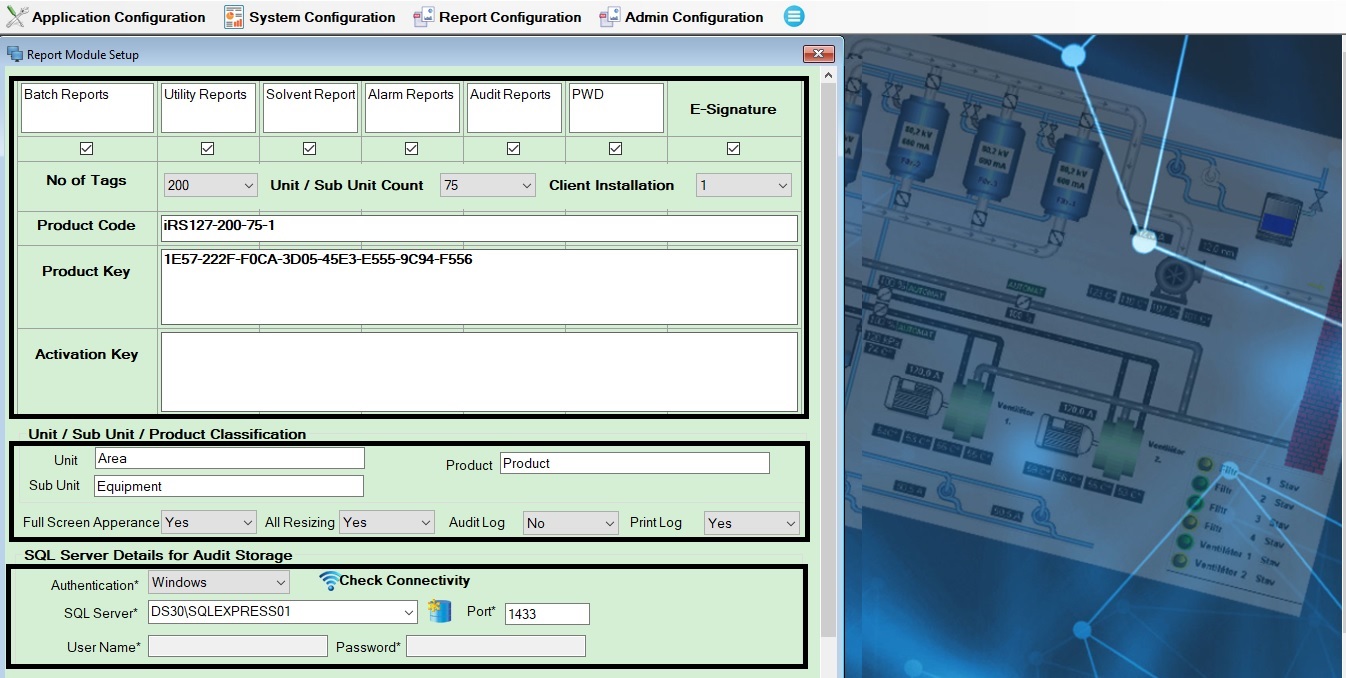 Report Designing Made Easy : iRS is a Dynamic Report Generation Tool which connects with the inherent database of Automation systems. features such as Report and Tag Configuration are given so that users can make their own Reports as per their Client's requirements. Datalog, Batch ,Shift ,MKT,Alarm, Audit Reports can be generated with E-Signature Using iRS Application. Integrates all type of sources like OPC DA, OPC Historian,OPC UA,OPC AE,MS Sql,CSV ,Ms Access, DvHisDB.