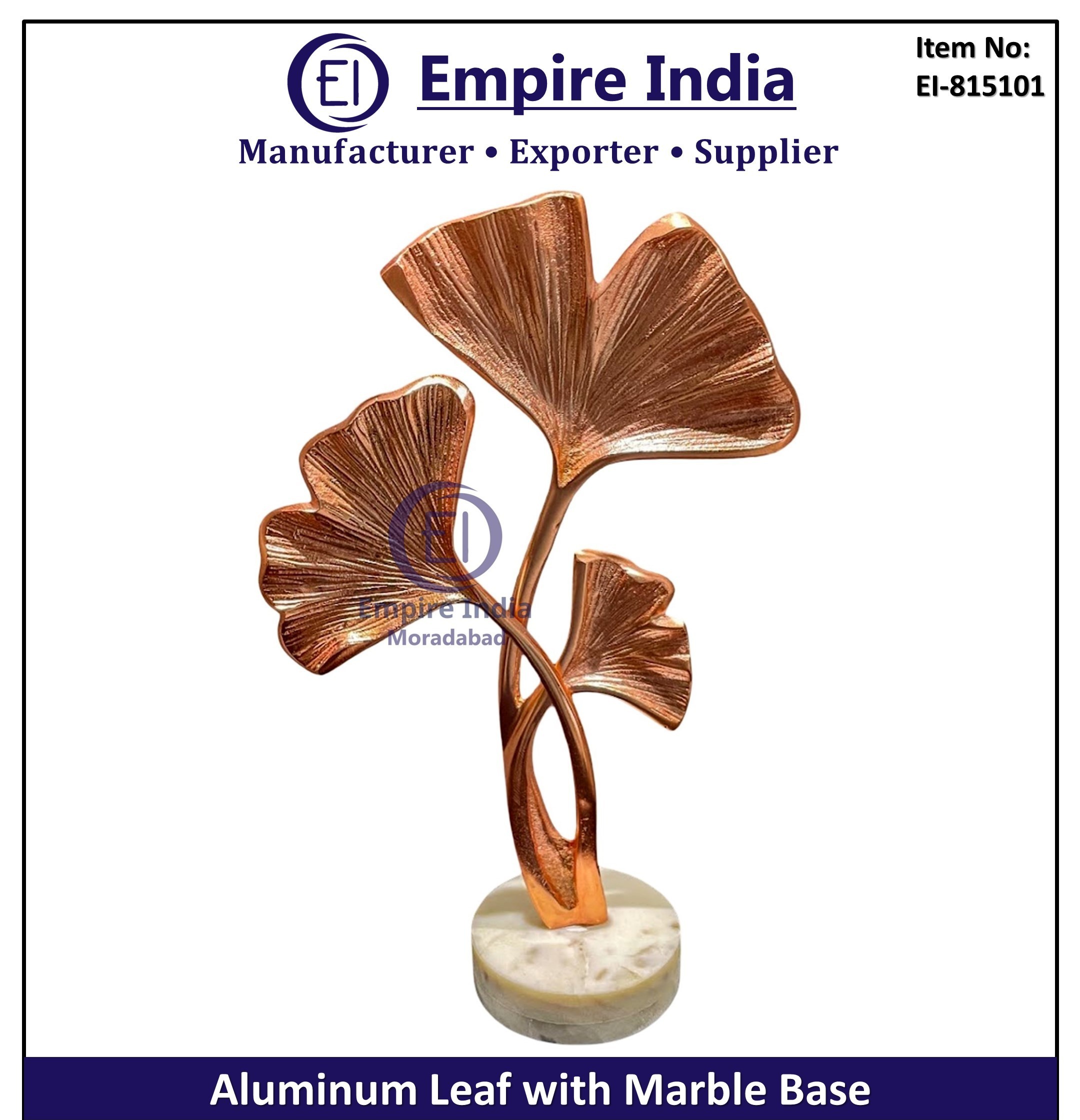 Aluminum Leaf Decor, Marble Base Table Accent, Designer Metal Decorative Piece, Luxury Table Decor India, Artistic Metal & Stone Sculpture, Moradabad Metal Decor Exporter, Modern Office Table Decor, Handcrafted Table Accent, Bulk Aluminum Decor Supplier, Custom Decorative Tableware, Gift Table Piece Exporter, Elegant Home Decor, Metal Leaf Marble Art,
