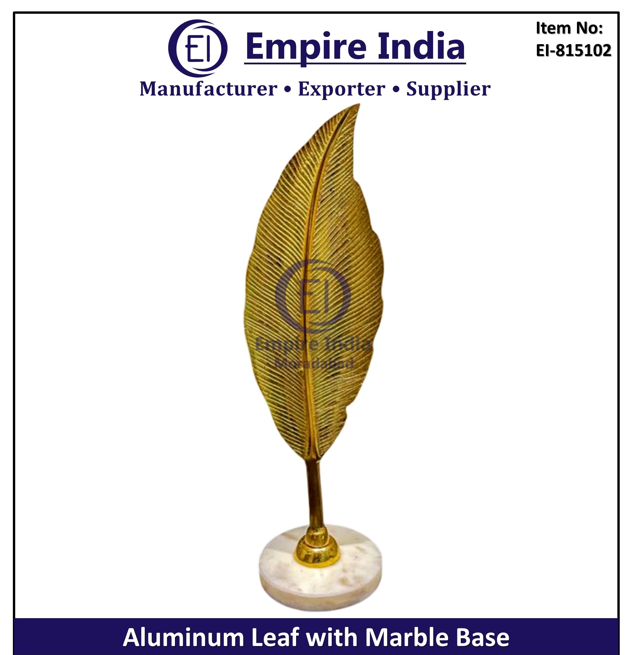 Gold Aluminum Leaf Decor, Marble Base Table Accent, Designer Metal Sculpture, Luxury Table Decor India, Modern Leaf Decorative Piece, Moradabad Metal Decor Exporter, Contemporary Office Table Decor, Handcrafted Metal Accent, Bulk Aluminum Decor Supplier, Custom Decorative Tableware, Gift Table Piece Exporter, Elegant Home Decor, Metal Leaf Marble Decor, prices, large orders, and fast worldwide delivery.