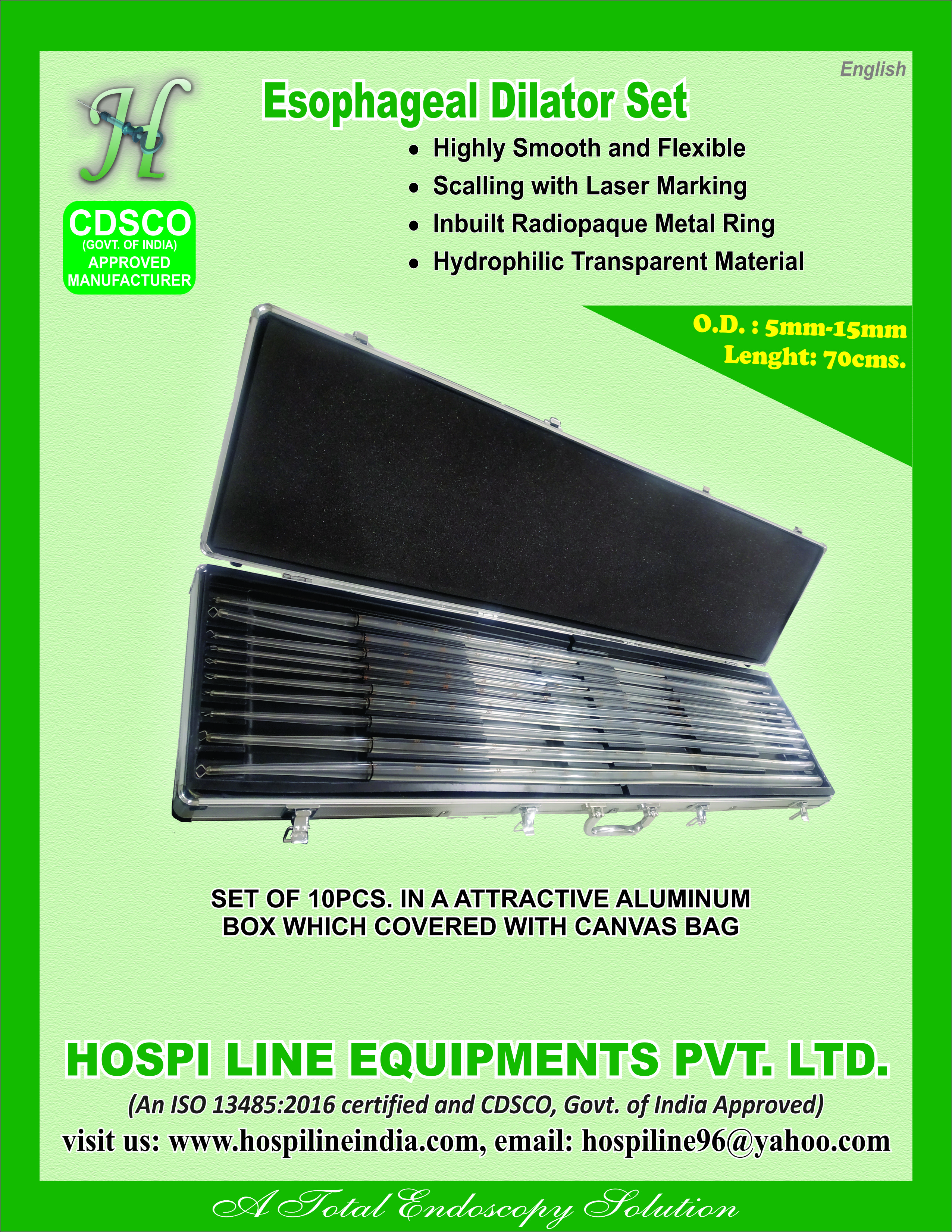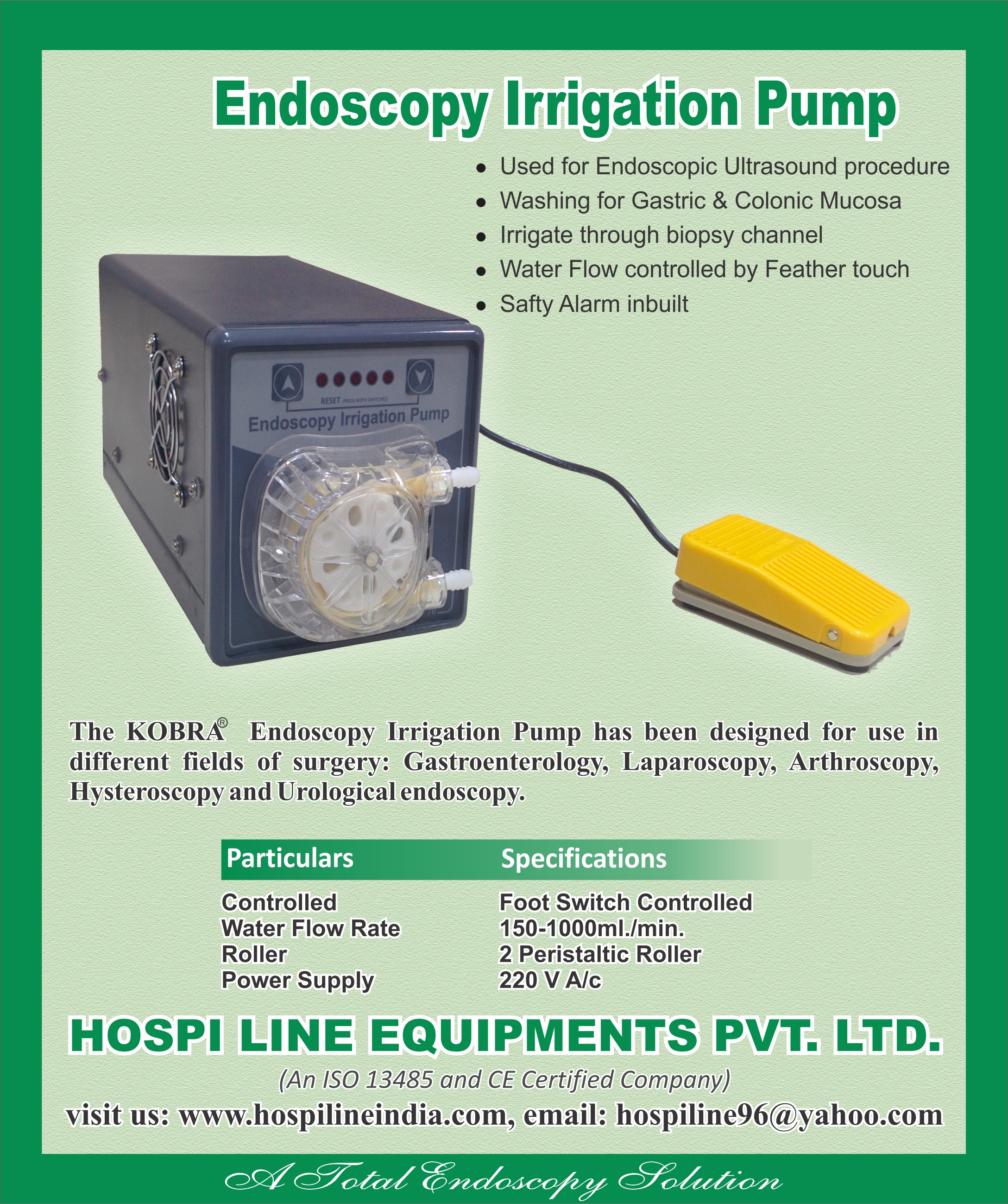 HOSPI LINE EQUIPMENTS PRIVATE LIMITED is a recognized name in the Test and Measurement Equipment, Medical Devices and Supplies industry. We are based out of Ghaziabad, Uttar Pradesh. Our offerings include Endoscopy Accessories (endoscopes & accessories & related products). To learn more about our business, products and services, send us an enquiry today.