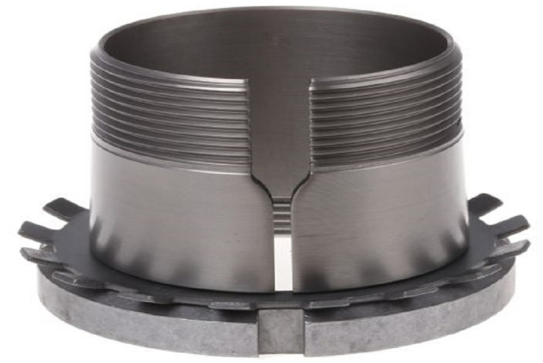 The key elements of adaptor sleeves are tapered adapter bush, locknut, lock washer. Adaptor sleeves are axially slotted sleeve with cylindrical bore, tapered outside surface and male screw thread at small end used with locknut and lock washer for mounting of bearings with tapered bore on cylindrical outside surface of shaft. It is also call pull-type sleeve. Adapter sleeves are the most commonly used components for locating bearings with a tapered bore onto a cylindrical seat as they can be used on smooth or stepped shafts. They are easy to mount and require no additional location on the shaft. When adapter sleeves used on smooth shafts, the bearing can be located at any position on the shaft. When used on stepped shafts, together with an abutment ring, bearings can be accurately positioned axially and bearing dismounting is facilitated.