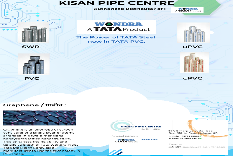 We are Authorized Distributors of Tata Wondra Pipes by Tata Steel in Lucknow.