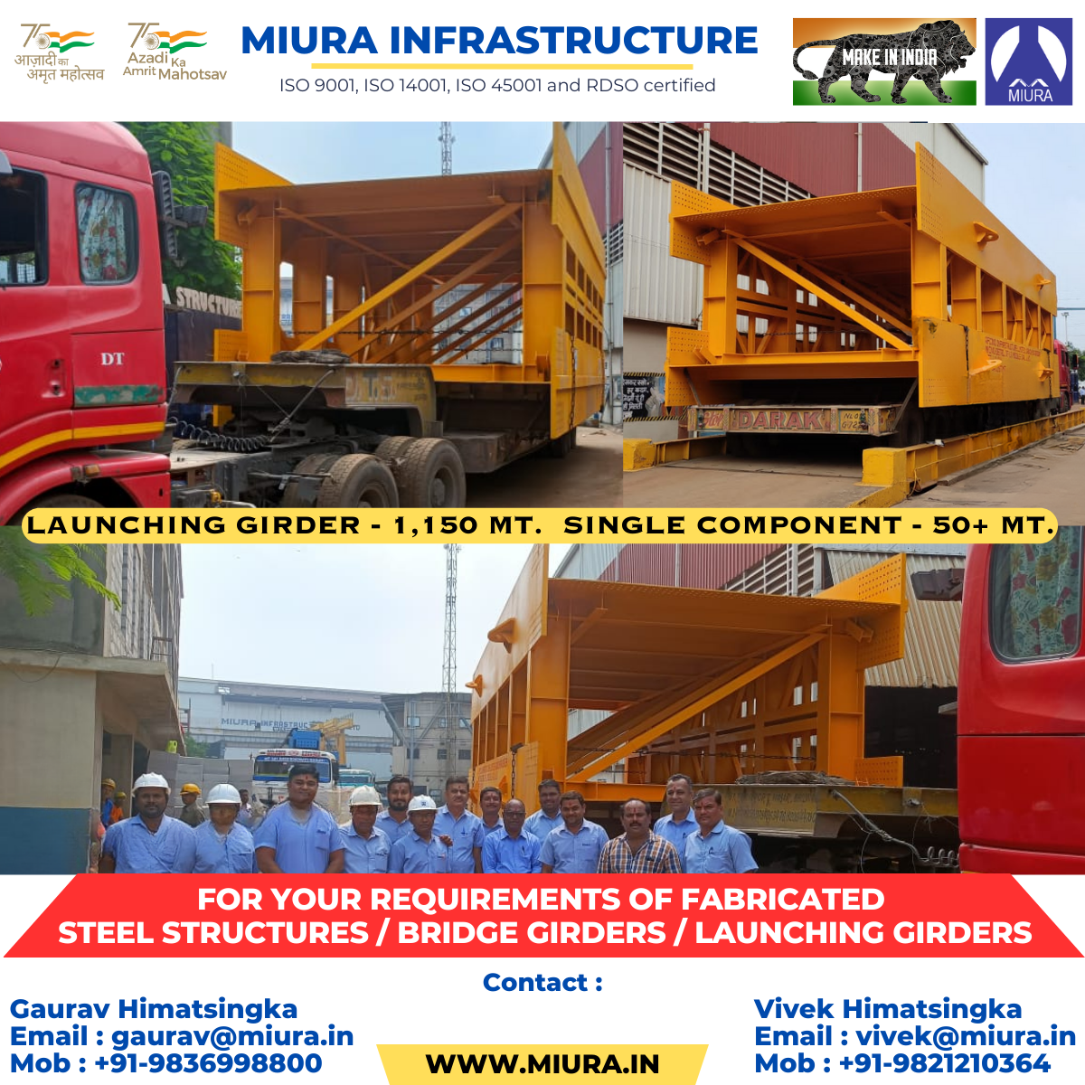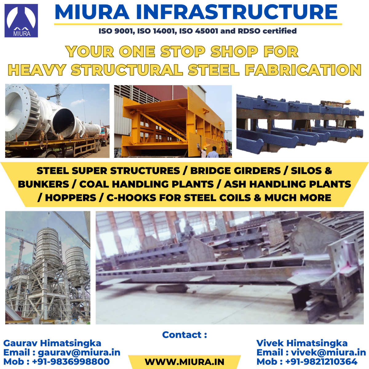 MIURA INFRASTRUCTURE PRIVATE LIMITED offers a comprehensive range of custom manufactured Technological and Building Structures as well as Machined Equipment serving many demanding and diverse market segments including infrastructure, highrise buildings, airports, bridges, steel, power, cement and construction.