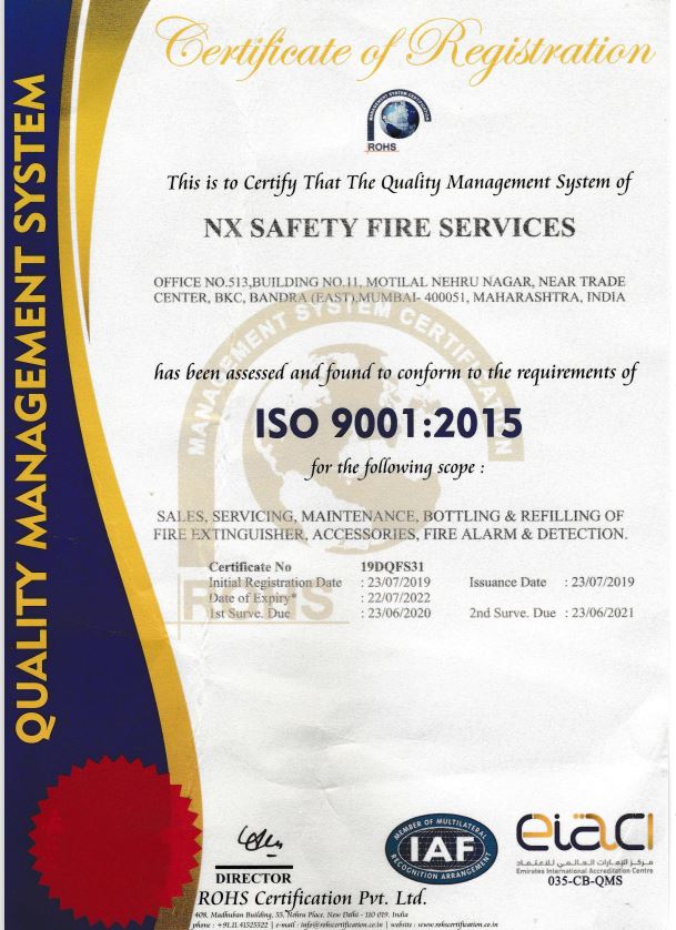 NX Safety Fire Services - ISO Certificate