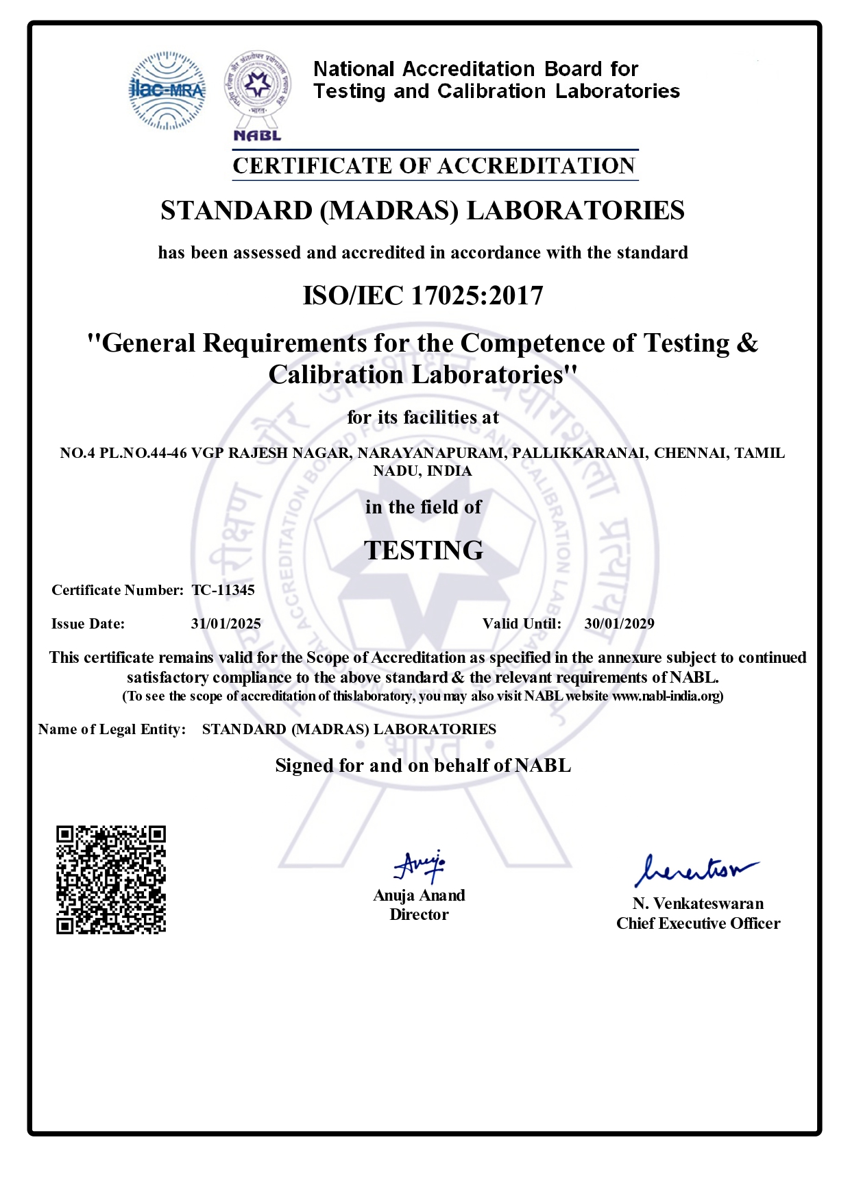 standard madras laboratories
