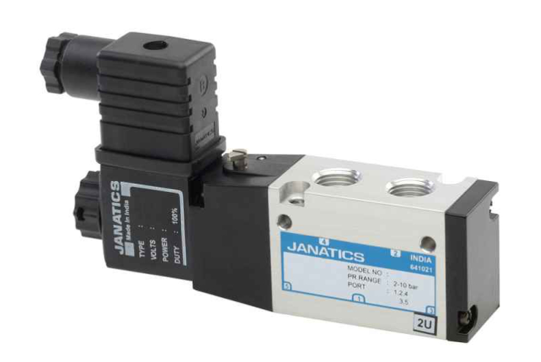Brand Janatics Ip65 Design Spool Coil Protection Type Voltage Dc: 12,24,48,110 Voltage Ac (50 Hz): 24,48,110,220 22 Mm Coil Width, A Flow Rate Of 3500 Lts/Min, And G1/2 Ports For The Inlet, Outlet, Exhaust, And External Pilot. Dry, Filtered, Lubricated Medium Compressed Air With A Working Pressure Range Of 2 To 10 Bar 2 To 4 Bar External Pilot Pressure Iso Vg32 Recommended Oil For Lubrication (Servo System 32) Medium Ambient Temperature: 5 To 60 C Construction Materials: Aluminum, Nitrile, Brass, Acetal, Pbt, Zinc Power Requirements: Ac 6 Va, Dc 5 W Solenoid Valve Made By Janatics