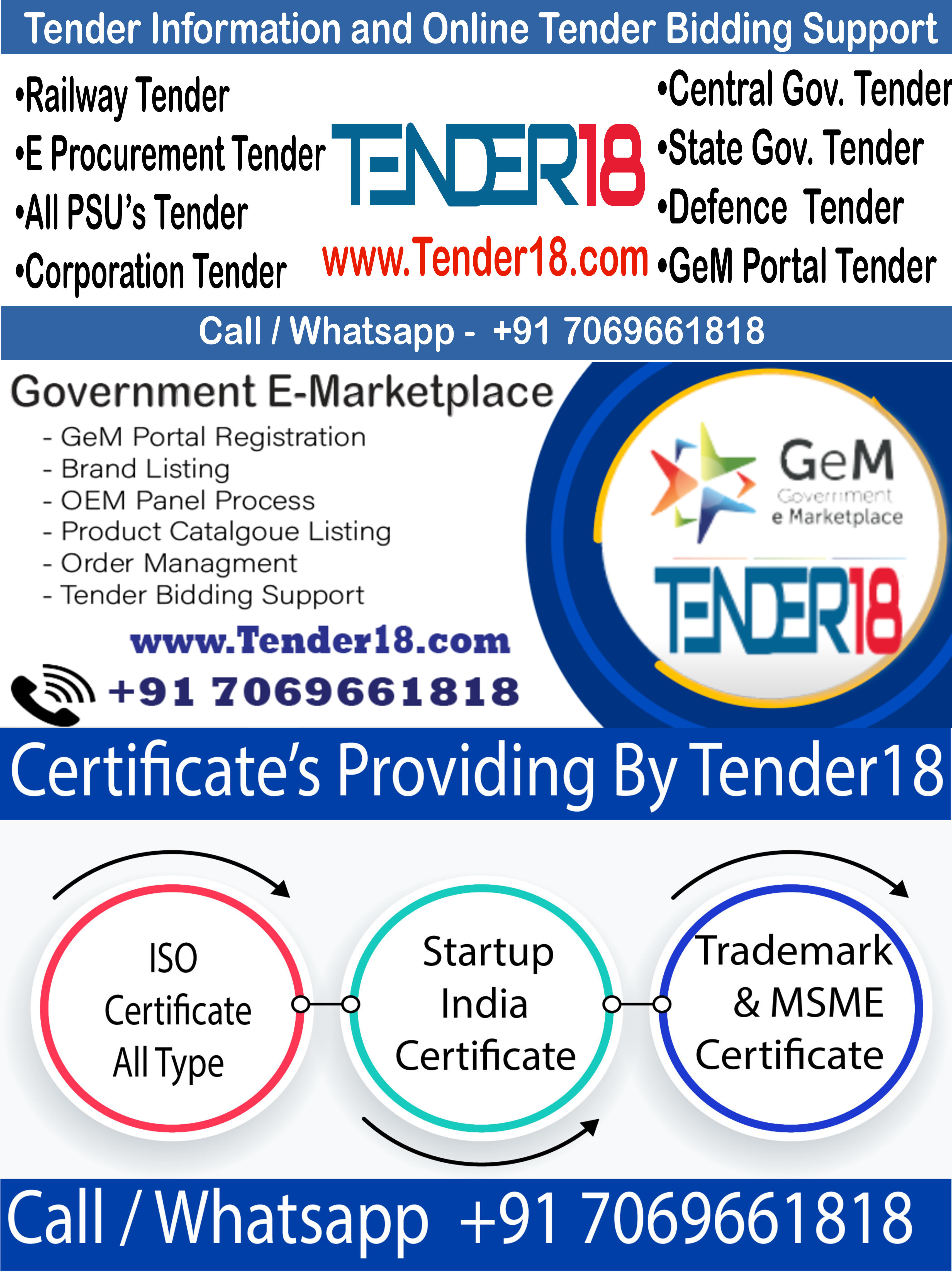 We Tender18 are willing to provide the most accurate tendering information to our valuable enthusiastic clients as we have comprehensive and reliable database of funded as well as self funded procurement opportunities which is updated on a daily basis from all sectors among the country. We are having the best professionals associated with us who are having more than 20 years of excellent experience in this business and are the ace of this business. Since our establishment our foremost aim has been to provide the efficient tendering information among the each and every part of India to our valuable clients.