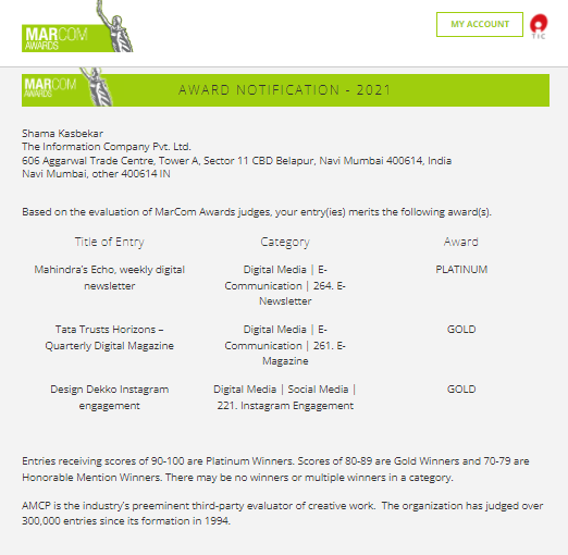 MarCom 2021 - Win in 3 categories